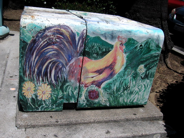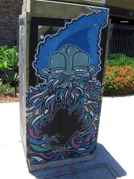 I walked through the neighborhood today and checked out two cheerful murals on two sides of the now vacant building. (I also spotted more of the team’s street art along Imperial Avenue. Photos to come!)