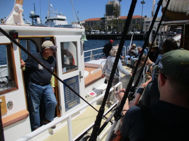 Ready to board the small Pilot boat, one of many historic vessels at the Maritime Museum of San Diego. We’re going to enjoy a short harbor cruise!