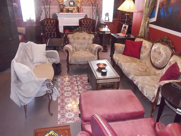 The amazing break room offers those who work at the San Diego Law Library a welcoming retreat. It looks like a student common room in the Harry Potter series!
