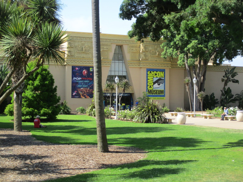 The Comic-Con Museum in San Diego’s beautiful Balboa Park.An original Hogwarts invitation envelope from the production of Harry Potter and the Sorcerer’s Stone.An original knight’s head prop from the production of the chess game scene in the film Harry Potter and the Sorcerer’s Stone.Marker ink on card drawing on Batman by artist Bob Kane, the character’s co-creator. The Superman drawing is signed by co-creator Joe Shuster.An original grapple gun prop used by Christian Bale as Bruce Wayne/Batman in the Christopher Nolan film Batman Begins.Original production storyboard from X2: X-Men United, by artist Gabriel Hardman.