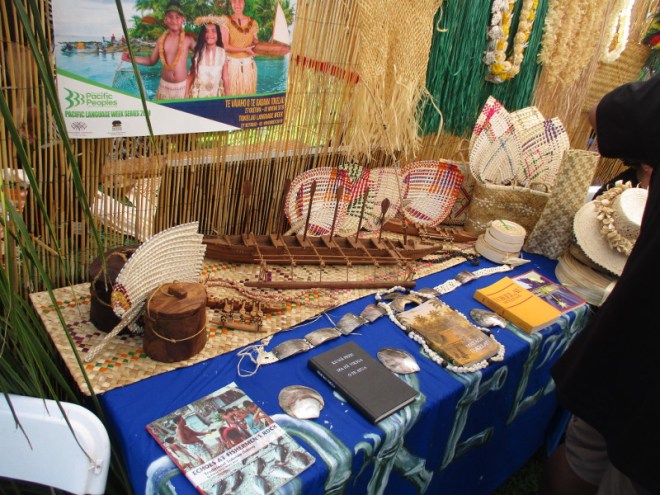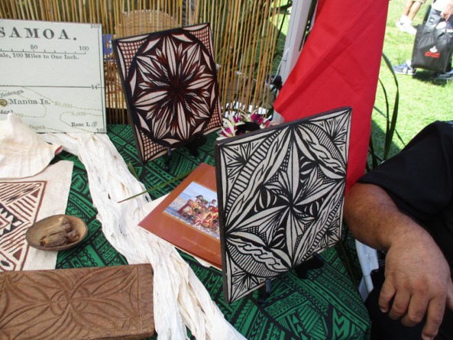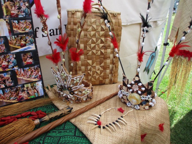 That table on the left by Lei Hulu of California was showcasing the Hawaiian art of feather craft…
