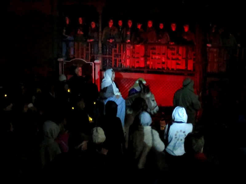 There was a brief narration followed by short call–and–response verses at six stations, representing different inns in Bethlehem. The stations were located in front of the historic houses that stand preserved in Heritage County Park.