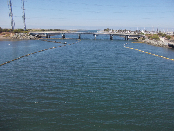 Looking west down the Sweetwater River channel toward San Diego Bay. That’s an old train bridge. That’s the Pier 32 Marina beyond it on the right.