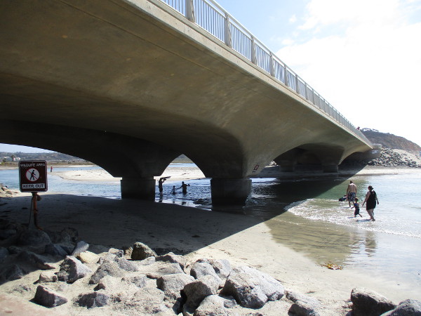 The North Torrey Pines Road Bridge, which crosses the narrow ocean inlet to Los Peñasquitos Lagoon, was completed in 2005, replacing a 1932 structure that was neither earthquake-proof nor environmentally friendly. The new 340 feet long bridge was designed with only four columns, which allows for better natural tidal flushing of the lagoon. The graceful design has won numerous engineering awards.