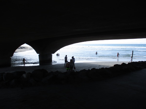 The second, more elaborate bridge whose arches have a uniquely Gothic appearance is 553 feet long and crosses the railroad tracks at the north end of Torrey Pines State Beach. It has been variously called High Bridge, the Sorrento Overhead, or North Torrey Pines Bridge. Built in 1933, it facilitated increasing car traffic along the coast highway just south of Del Mar–part of the main route that connected San Diego to Los Angeles.