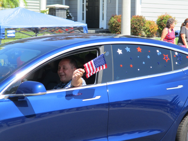 Neighbors came out for a patriotic community parade that wound along several residential streets.