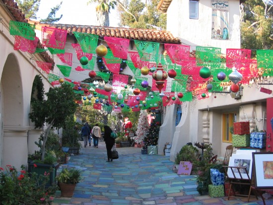 During my walk this morning, I decided to swing past San Diego’s famous Old Globe Theatre and check things out. It looks like all the colorful holiday decorations are up, and everything’s ready for the big Balboa Park December Nights festival in a couple weeks.