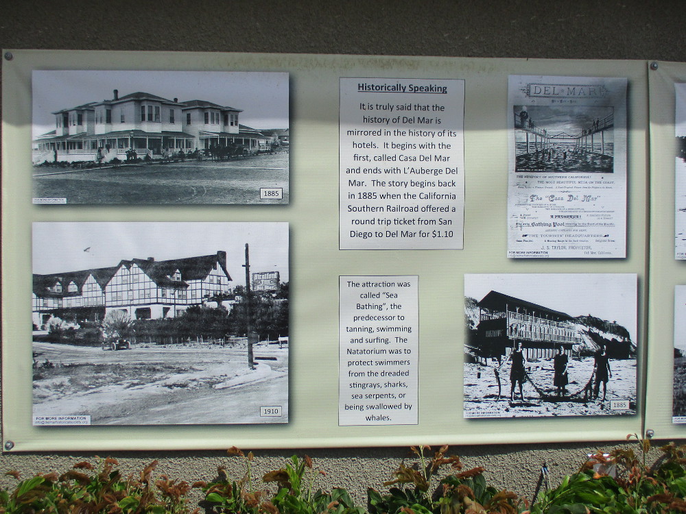 Last weekend I enjoyed a look at these fascinating historical images and descriptions, which are provided by the Del Mar Historical Society. I took photographs of the banners, moving from left to right.