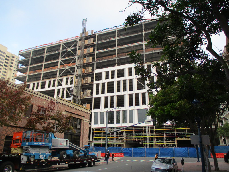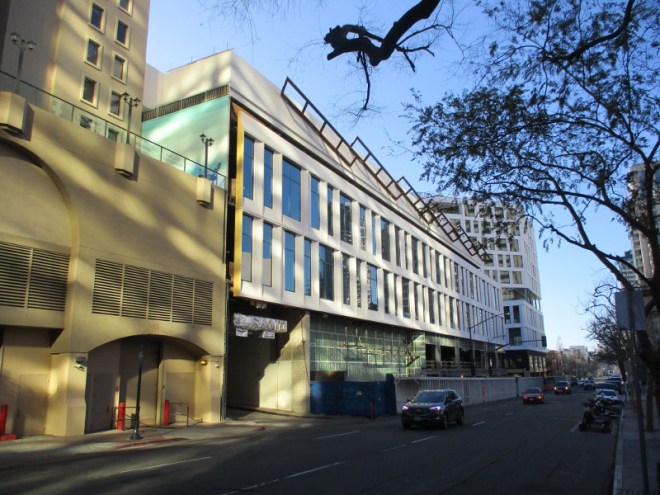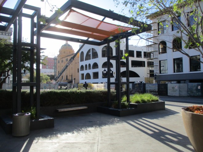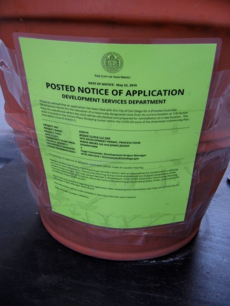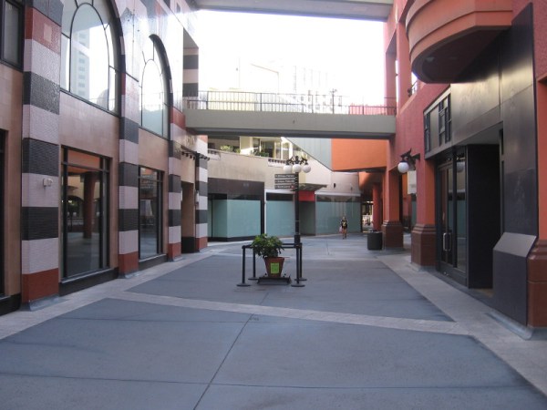 You can find the bronze plaque in Horton Square, an outdoor area north of the old Horton Plaza shopping mall. (Not to be confused with larger Horton Plaza Park.)