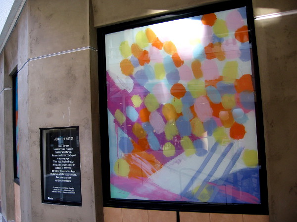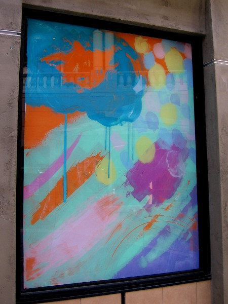 I made a cool discovery today! I was walking through Horton Plaza, downtown’s extremely unique shopping mall and popular tourist destination, when I noticed that some art was being displayed on a lower level. A sign indicated that Horton Plaza is showcasing the work of local San Diego artists. Great idea! Here are some pics!