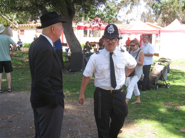 British bobby on patrol talks to a gentleman at unique Balboa Park event.
