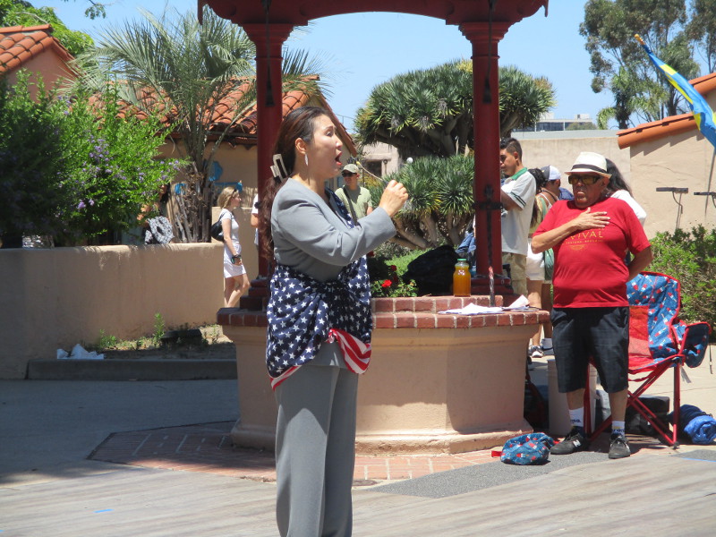 Diverse people from around San Diego took to the stage in costume, recalling how our nation’s Founders brought us Liberty by rebelling against the despotic King George III of the Kingdom of Great Britain.