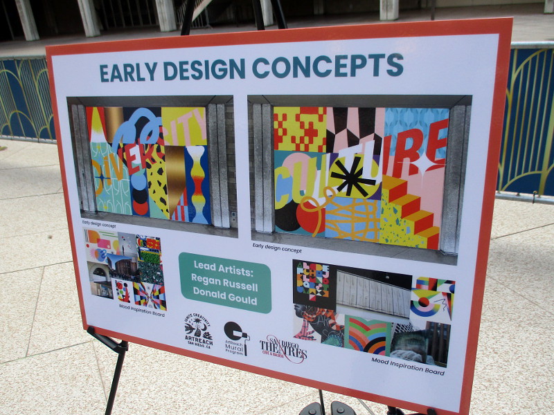 Included was a graphic showing early mural design concepts. The leading artists are Regan Russell and Donald Gould.