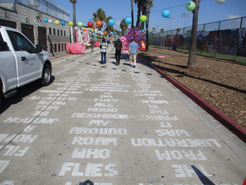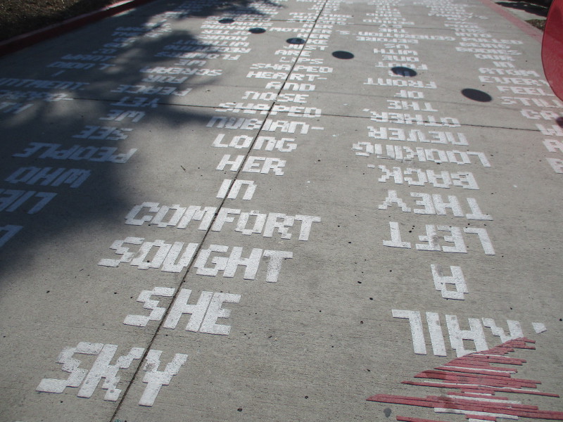 A number of other plaques are also located on the balcony, including one featuring the poem Refund by past San Diego Poet Laureate Paola Capó-Garcia. It is all part of the overall exhibition.