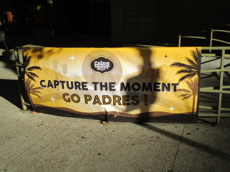 I wandered around the Gaslamp Quarter and East Village this morning and saw flags and banners going up, sidewalks getting spruced up, news reporters hanging out near the ballpark, and fans in Padres hats and jerseys walking around.