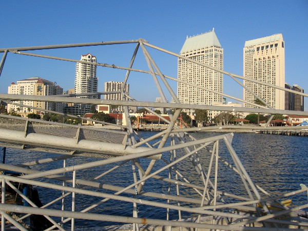 Very late this afternoon I took a walk along the same G Street Pier, on San Diego’s picturesque Embarcadero. Just minutes before sunset, the sunlight was beaming almost horizontally across the glittering blue water.