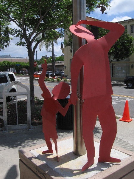 Bird poop must be periodically cleaned off Morning, a sculpture created by renowned San Diego artist Donal Hord. Seagulls like perching on the head. (Imagine how the droppings appear. Yuck.)