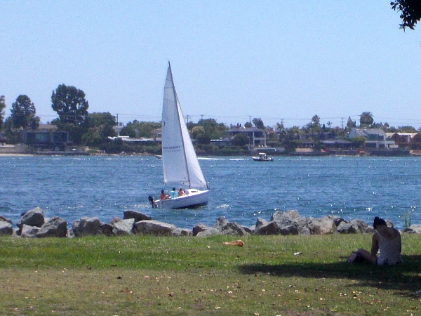 I looked for ducklings in the Seaport Village pond, but didn’t find any. I did observe a duck taking a springtime nap.