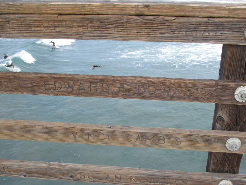 Just a few of the many names on the weathered wood rails along the length of the pier…