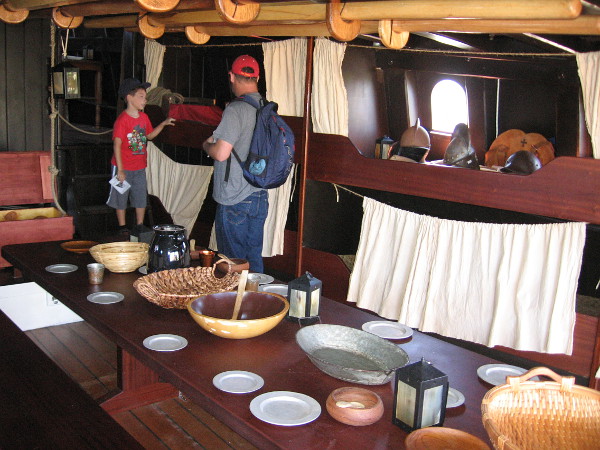 Sadly, the gentleman welcoming visitors on board (not the guy pictured) apparently had never read Two Years Before the Mast. He didn’t seem to know anything about Dana’s stay in San Diego, cleaning and curing cattle hides just inside the bay at Point Loma, riding with his friend inland to the old Mission, and having memorable good times in Old Town when San Diego was in its infancy.