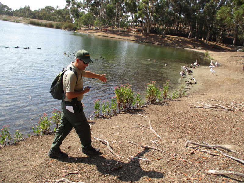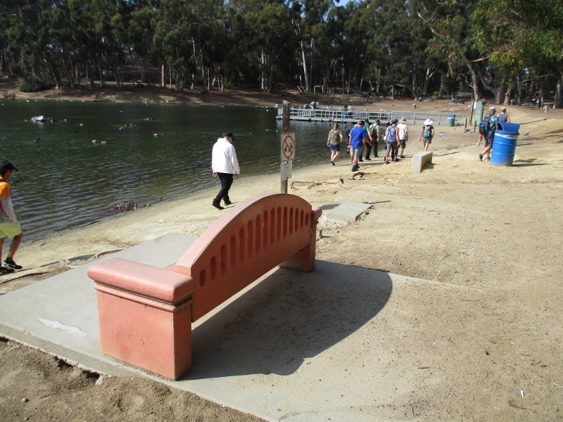 Sharp-eyed people walking through Lindo Lake County Park in Lakeside might notice an old marker in the grass, on the south side of the lake, not far from a large shelter structure. A close examination reveals that it is a Blue Star Memorial By-Way marker, placed by the Lakeside Garden Club. It is dedicated to the Armed Forces of the United States of America.