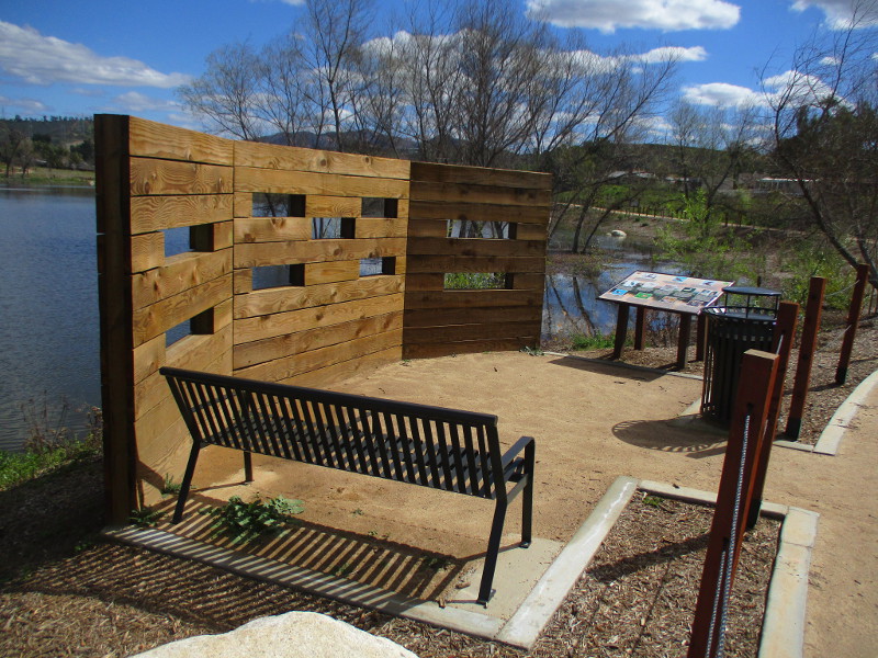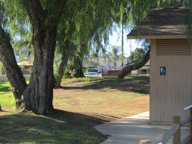 The marker was placed here almost 40 years ago. This Facebook post recalls: Fourth of July 1986, the Blue Star By‑Way Memorial Marker and star pine were dedicated in Lindo Park, Lakeside, California as part of the opening ceremonies of the Centennial Celebration of Lakeside. As the red, white and blue balloons were released into the sky at the end of the dedication. I think we all felt pride in a job “Well done”.