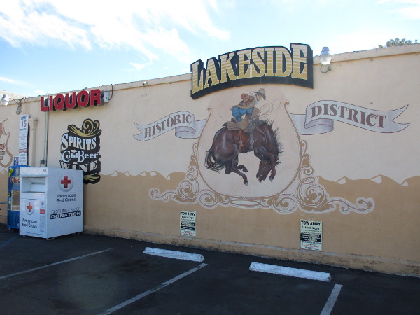 Rodeo celebrated in Lakeside Historic District mural on side of Lakeside Liquor store.