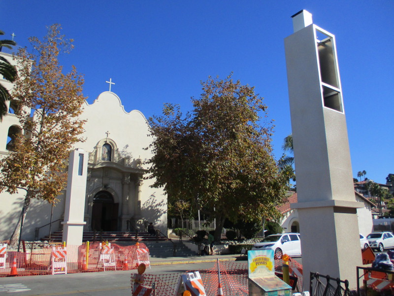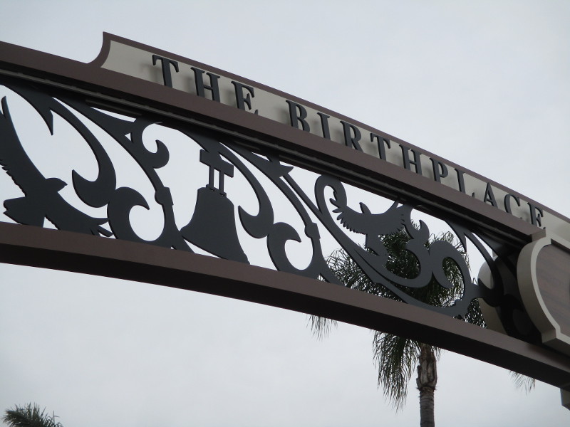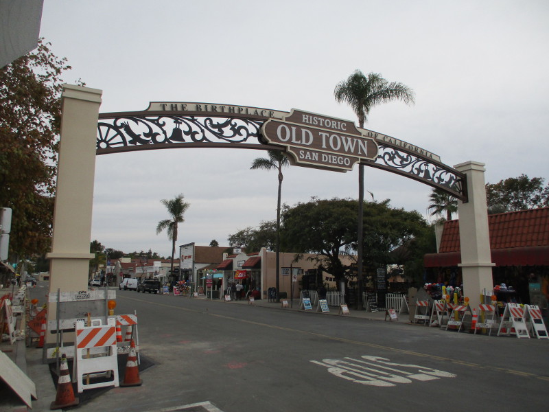 Both sides of this new gateway arch (which straddles San Diego Avenue at Twiggs Street) contain the words: The Birthplace of California – Historic Old Town San Diego. The arch stands at the edge of Old Town San Diego State Historic Park and in front of the historic Immaculate Conception Catholic Church.