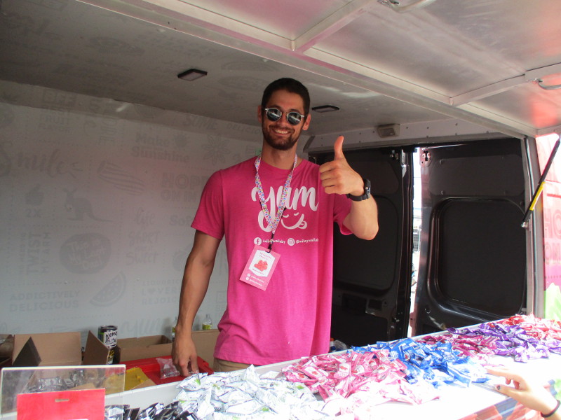 I saw a vampire fly. I saw a flying shark. I listened to Karma sing. I saw five Sherlock Holmes. I saw a walking pickle. I got a smile and a free poster from local radio station 91X. I got a smile and some licorice from Wiley Wallaby. I saw Thor wield a huge hammer. I watched a crazy whack-a-mole.