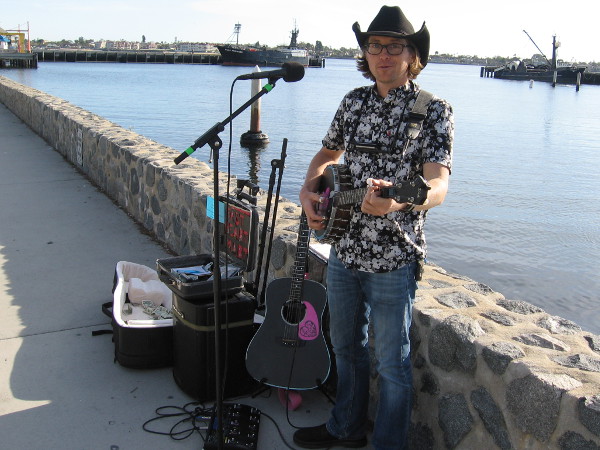 For a few minutes this afternoon, during my walk along the Embarcadero, I relaxed on a bench with a smile on my face. I was tapping my toes listening to some really smart, folksy, bluesy, heartfelt singing accompanied by banjo and harmonica. I was enjoying a performance by Fast Heart Mart!