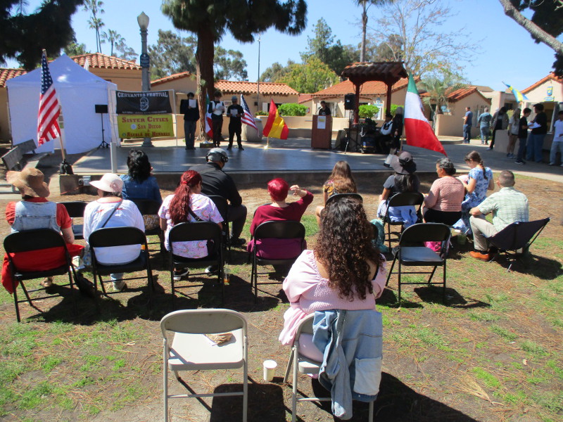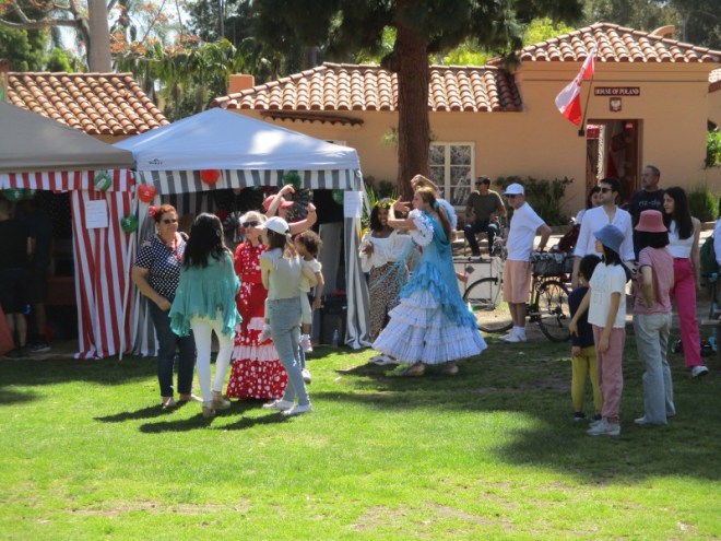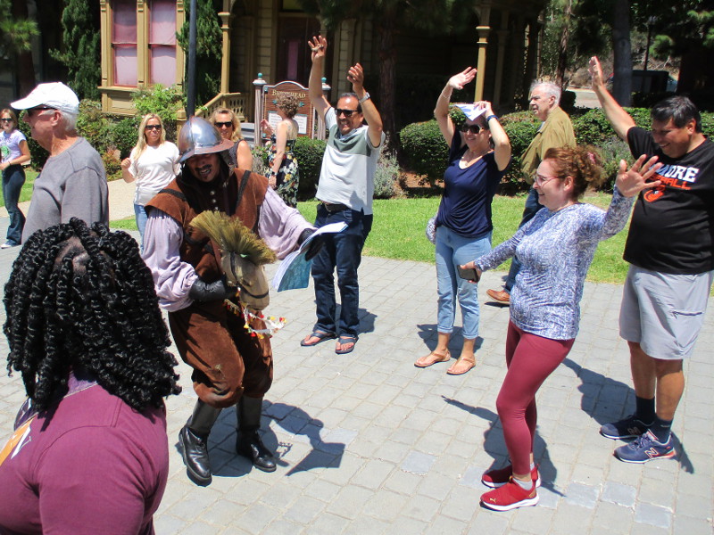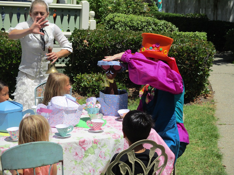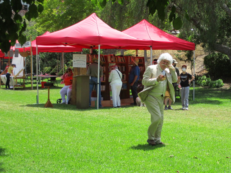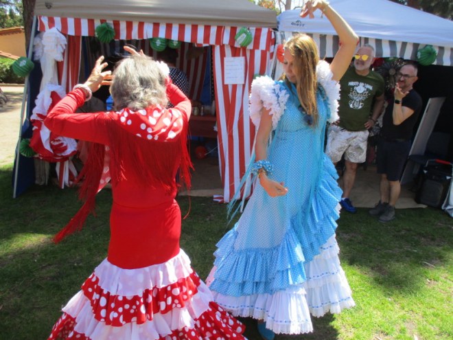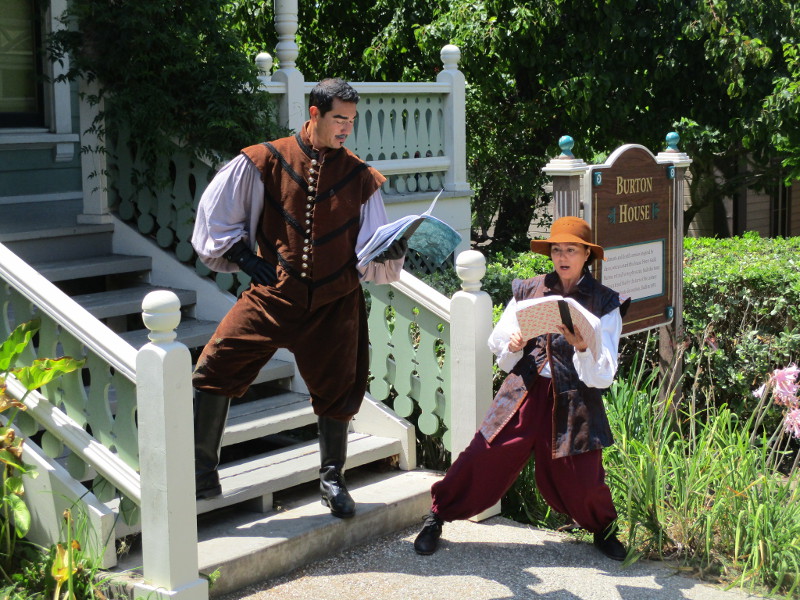 Dressed in Regency attire, members of the Jane Austen Society of North America San Diego Region assembled outside the House of England cottage and listened to beautiful music performed by Amanda Fagan. Many of the ladies were wearing bonnets!