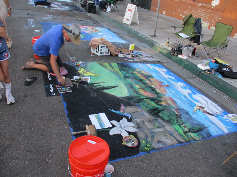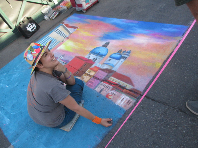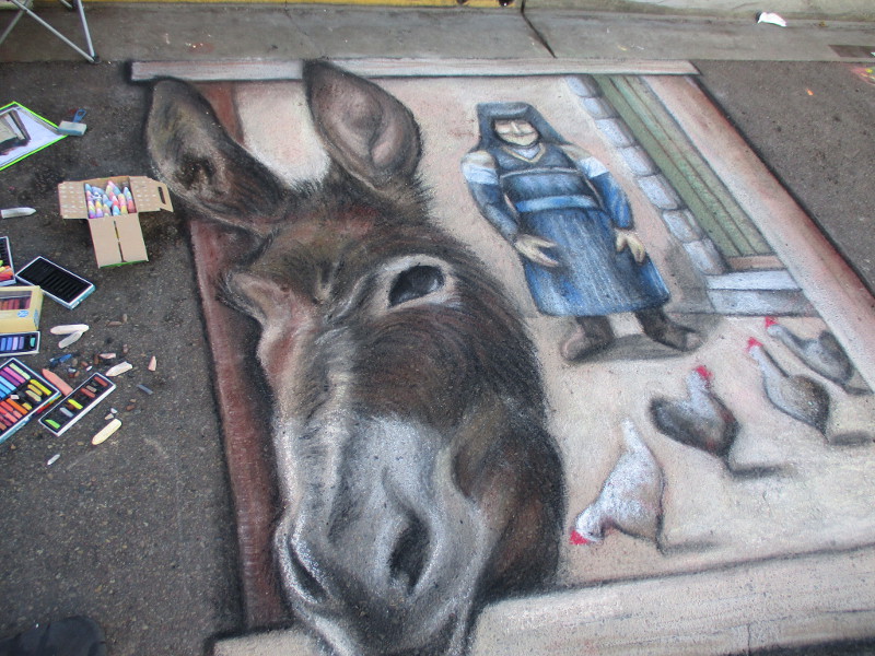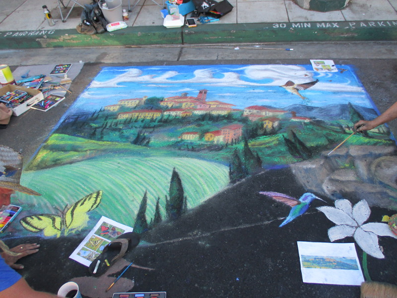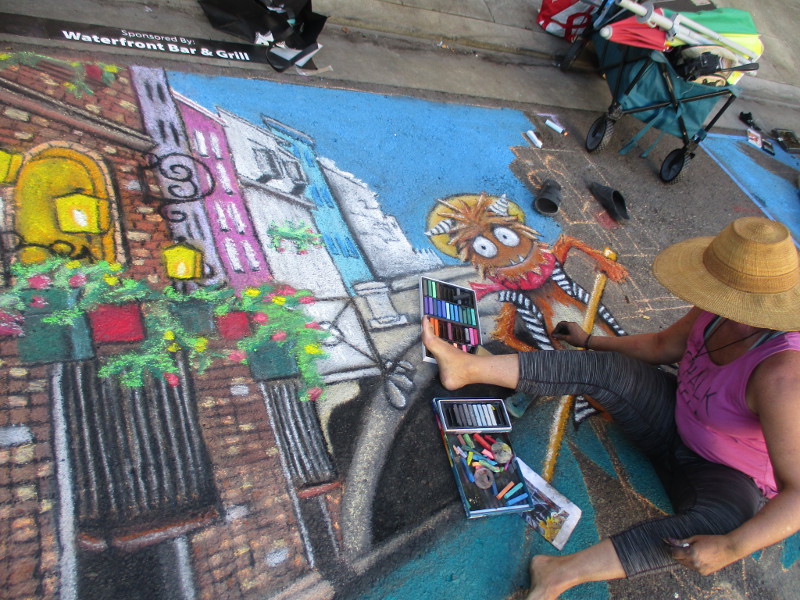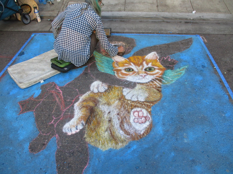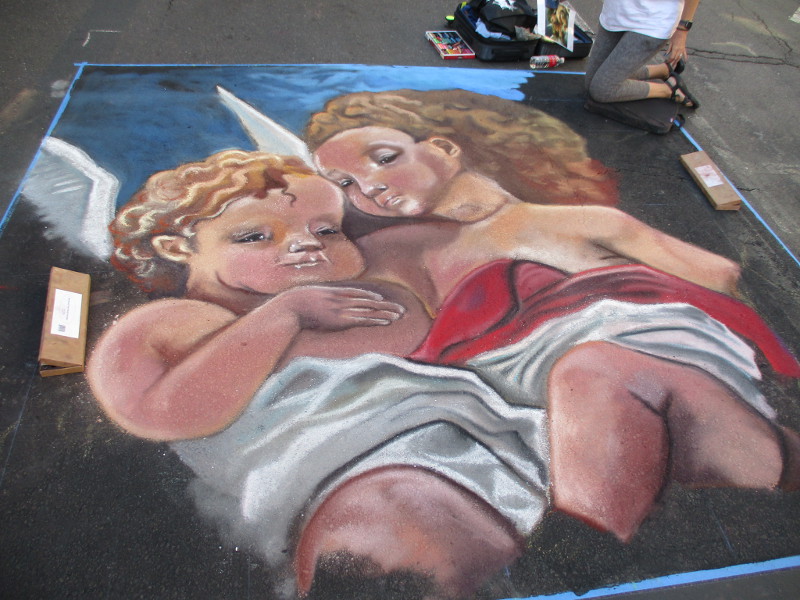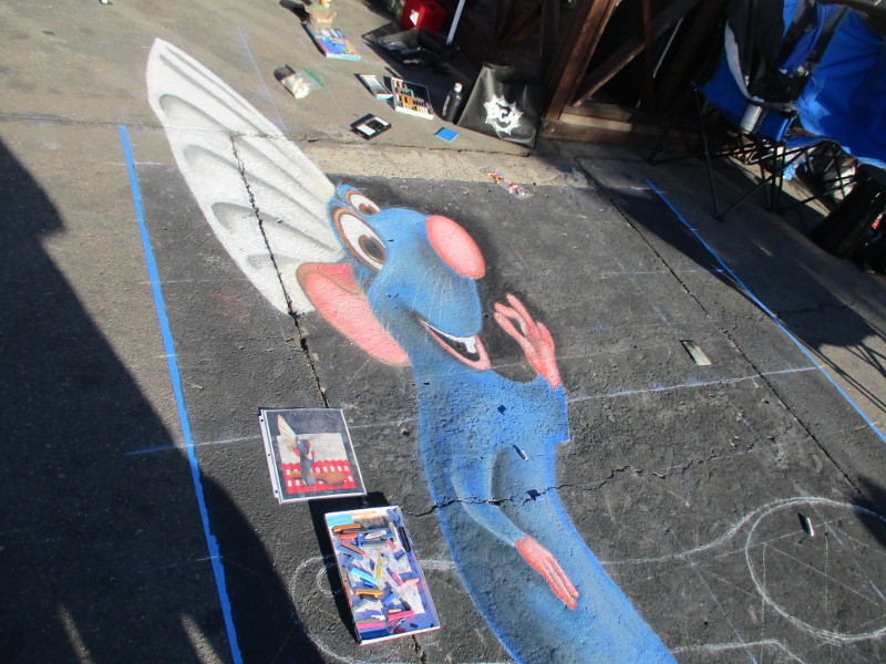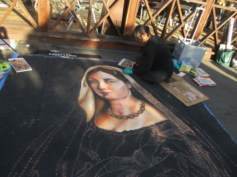 Dozens of chalk artists have arrived from all over, including from out-of-state. Most are friendly and welcome a few words from admirers.