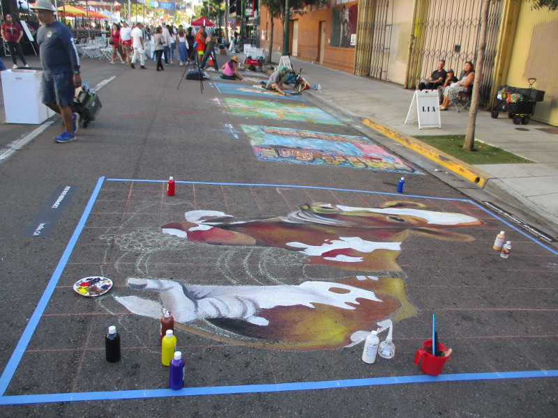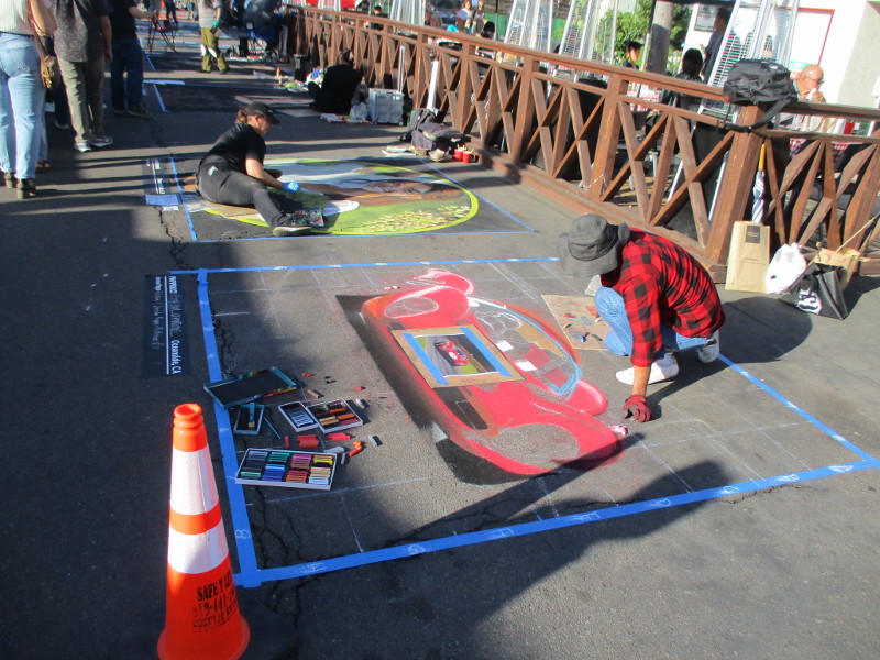 The event continues Sunday, October 19, 2025 from 11 am to 5 pm. Consequently, many of the artists when I walked by were still at work on their colorful chalk masterpieces!
