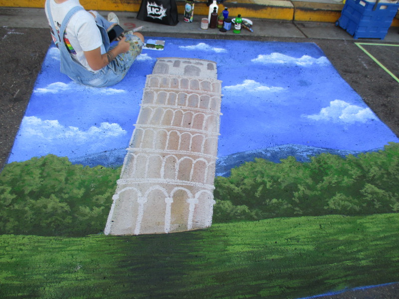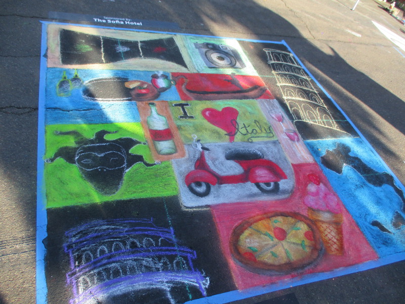 Here are some of the Italy-themed chalk art creations, most of which are works in progress. I’ve included artist team names in the photo captions…
