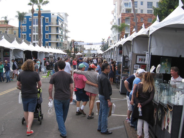 A crowd of art aficionados converge on San Diego’s Little Italy neighborhood.The big annual Mission Federal ArtWalk is a time to relax, enjoy life, and feel some creative inspiration.Enjoying art, food and friendship.