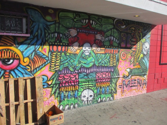 If you like this comic book-style street art, you’ll like another mural painted by Fizix several years ago with even more superhero and pop culture characters. You can enjoy photos of that amazing mural by clicking here!
