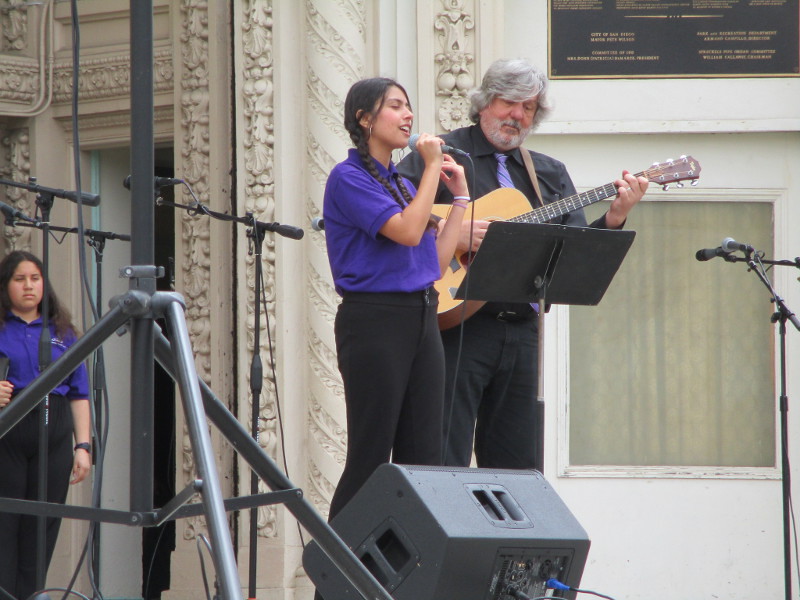 This afternoon the youth singing group performed at the Spreckels Organ Pavilion in Balboa Park. They were accompanied by Adam Ferrara, a fine guest organist. A sizable crowd sat listening in the benches.