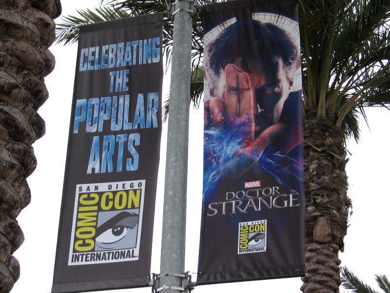 A sign that 2016 San Diego Comic-Con is near has appeared along the Embarcadero. Many street lamps are hung with cool Doctor Strange banners! Marvel’s Sorcerer Supreme and his upcoming movie will definitely be a big source of excitement at this year’s Comic-Con. A little more than a month to go!
