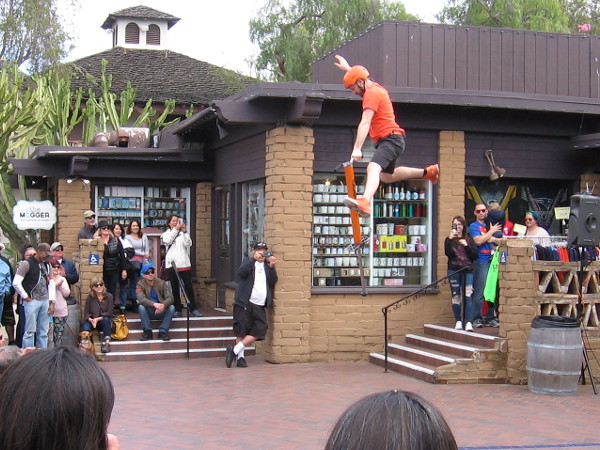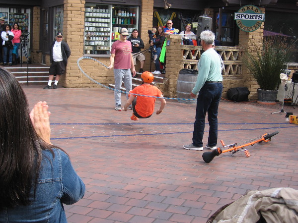 The 2018 Seaport Village Spring Busker Festival is taking place this weekend!Dango (Derrick Gilday of San Diego) climbs a stack of chairs in Embarcadero Marina Park North, right next to Seaport Village.Dango juggles flaming torches to the delight of the gathered crowd!I was laughing out loud at the screwball antics and absurd comedy of Wacky Chad.Wacky Chad jumps rope every which way. An exhibition of amazing physical dexterity.More juggling. This time atop a super tall unicycle.Some crazy, super high pogo sticking was the highlight of Wacky Chad’s routine. He has appeared on America’s Got Talent twice!The Lynx Variety Show, coming from San Francisco, included a feat of amazing sword swallowing.Mitchell Walker is a regular at Seaport Village, and so is his cool didgeridoo!Greg Frisbee prepares to begin his funny Rubber Chicken Show.Extreme Rahim prepares to wow his audience with magic and positive clean humor. I often see him performing at Seaport Village.Extreme Rahim provides a smile and many good memories in San Diego!
