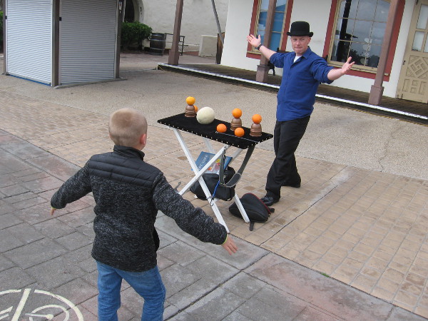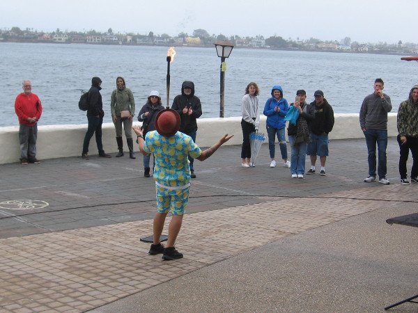 This afternoon I randomly walked about Seaport Village, checking out the acts of great street performers from all around the United States and the world. I protected my camera from the wind and showers and took a whole bunch of photographs. Unfortunately, today’s attendance seemed reduced by the weather.