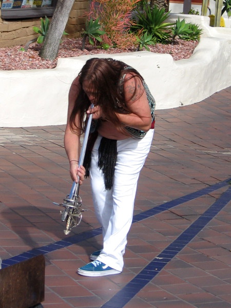 While I didn’t see this sleeveless magician perform last Sunday, I did savor the music of a nearby harp player and listened to a guy playing a funky didgeridoo!