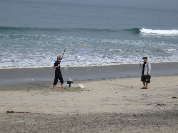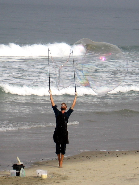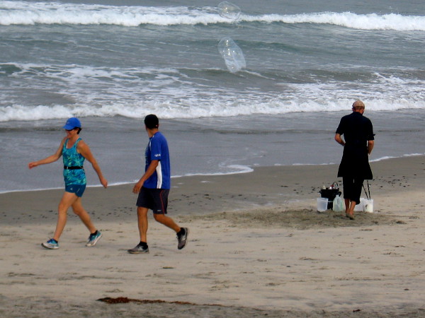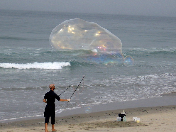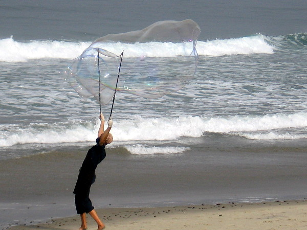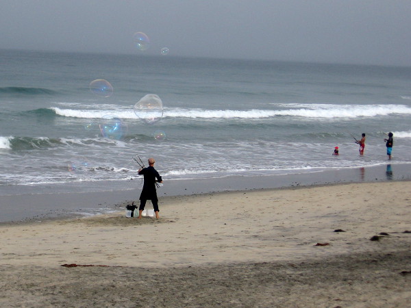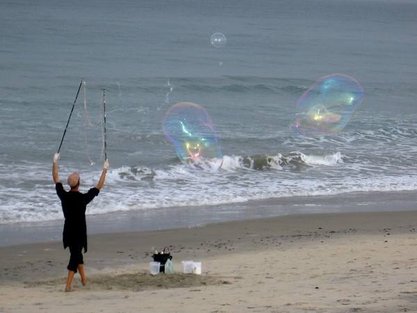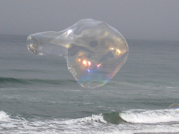 After the fog had lifted, as I made my way back north from the sandstone cliffs, I was surprised to see colorful bubbles rising above the surf.