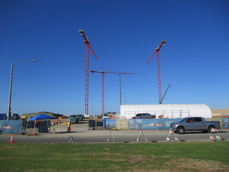About all I could see during my walk were these big cranes, some trucks, excavation machinery and mounds of dirt. The last couple photos were taken from the fishing pier, then from a point next to a sculpture called The Fisherman.
