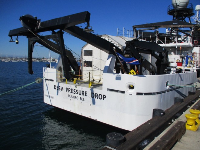 It turns out DSSV (Deep Submersible Support Vessel) Pressure Drop, a privately owned ex-US Navy ship, is absolutely extraordinary! Last year its submersible, called Limiting Factor, made the deepest manned dive ever in Earth’s oceans–it descended 10,928 meters into the Challenger Deep in the Mariana Trench!