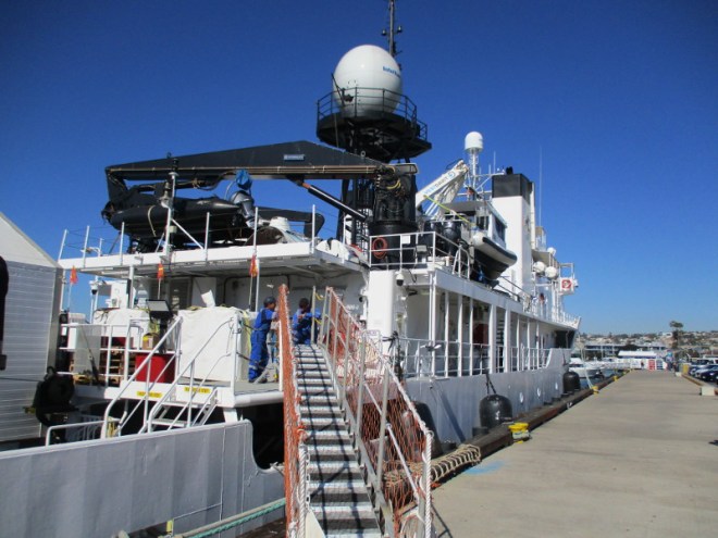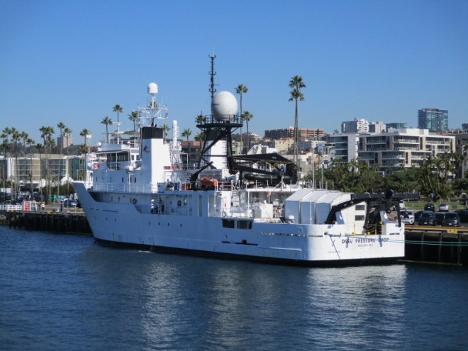 Every so often, a very unusual, one-of-a-kind ship will dock on San Diego’s Embarcadero. Today I saw a unique ship with the peculiar name DSSV Pressure Drop, so I had to check it out!