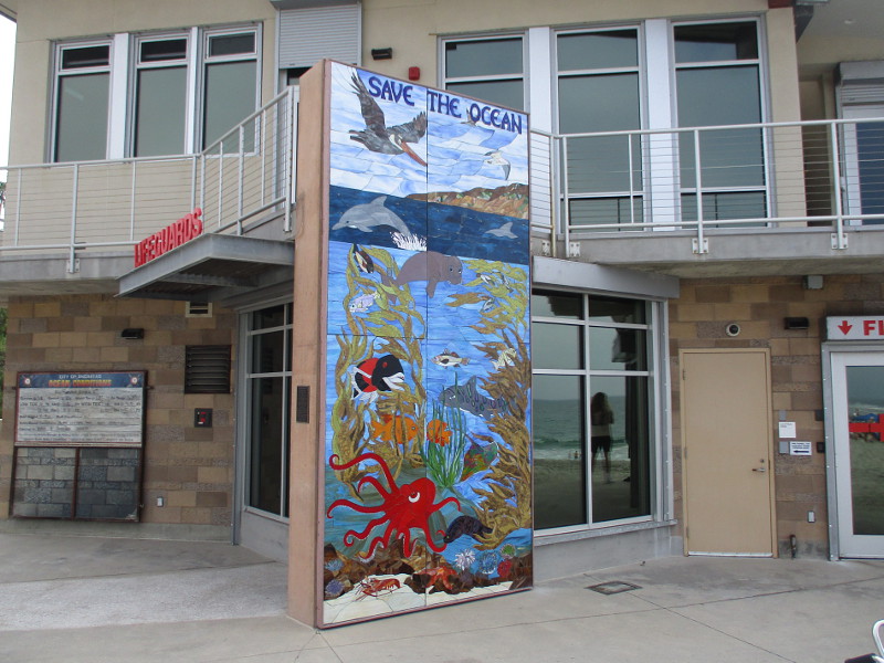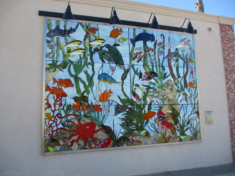 All the abundant sea life swimming through the mural was designed and created by Don Myers and assembled by the citizens of Oceanside.