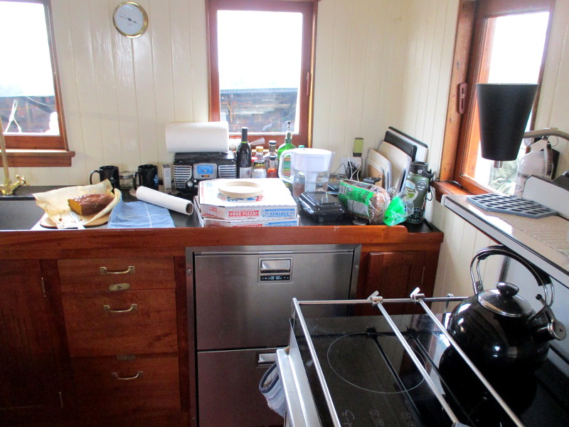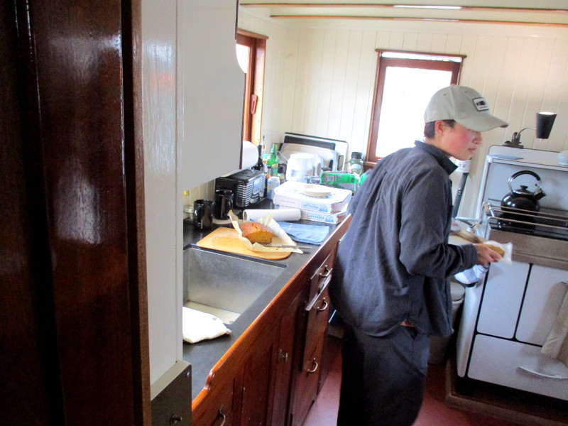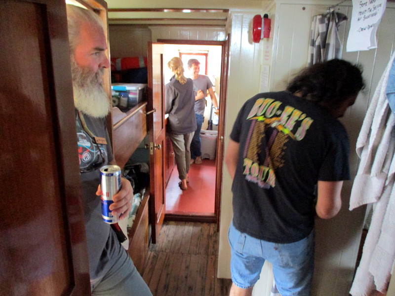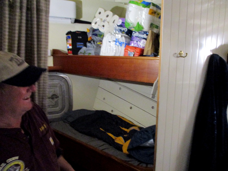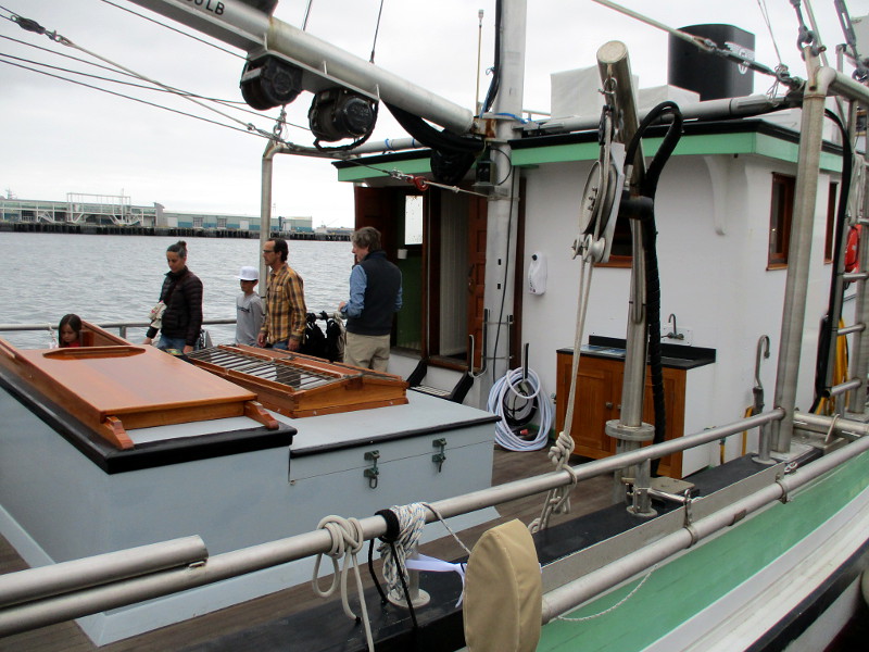 We then proceeded through the crowded engine room. You can learn about the Western Flyer’s original Atlas-Imperial diesel engine here. Today’s diesel/electric engine is quite useful for scientific research, allowing the boat to maneuver silently. I took no photographs of it–sorry.