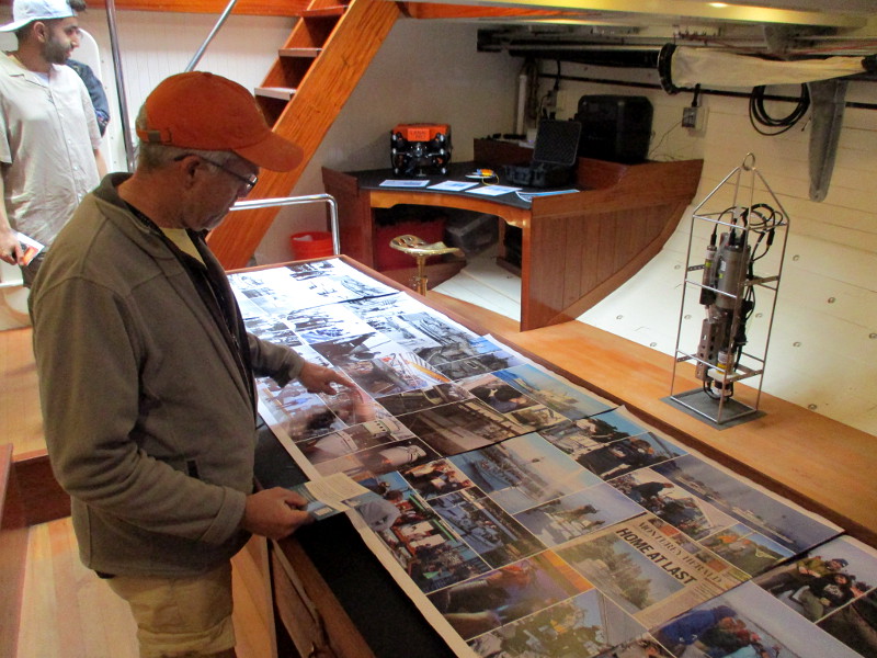 Historical photographs of Western Flyer, and from the Sea of Cortez expedition, cover the large table for our tour. You can see in the next photo some of the modern research equipment used by ocean-going college students today…