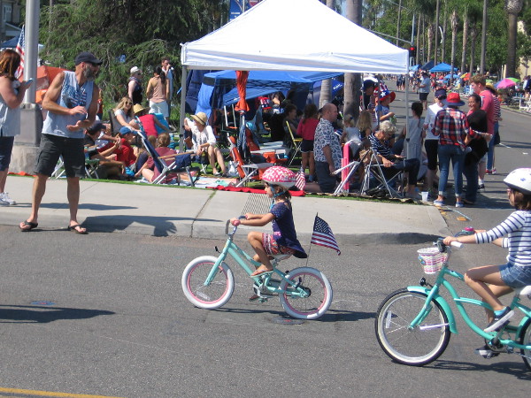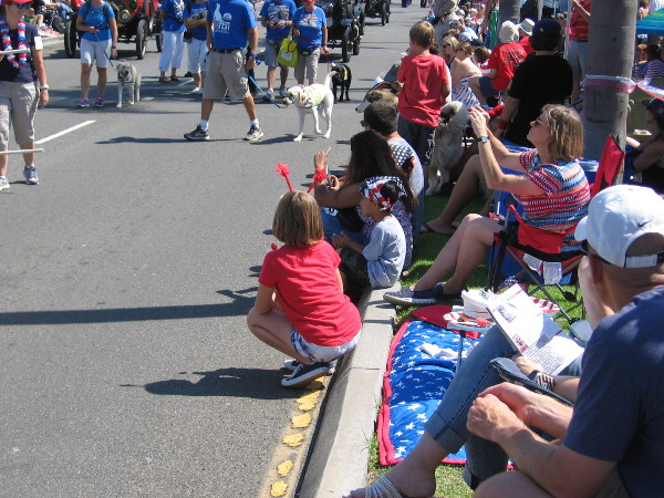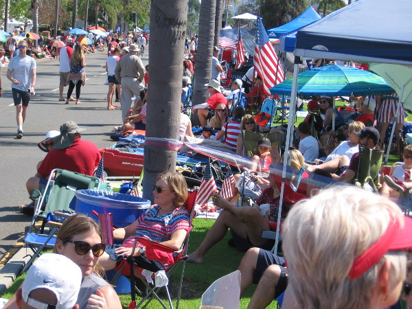 I saw many smiling families and much love of country on this Independence Day. These photos (except for the one above) are in chronological sequence. First we see a crowd gathering along the parade route…