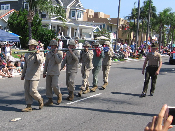 These guys, under the direction of a Drill Instructor, periodically reenacted Raising the Flag on Iwo Jima during the parade.
